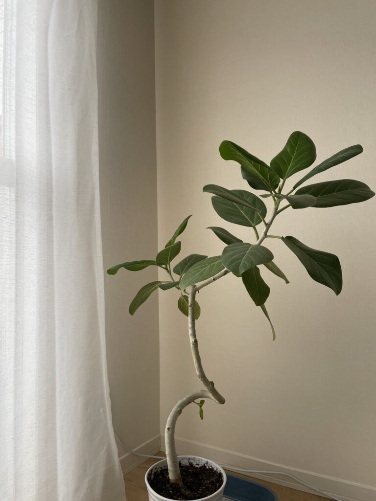 以前紹介した観葉植物のゴムの木が家に届きました。実は一週間くらい前に届いていましたが、まだ新しい鉢が見つかっておらず😭。これで前回紹介したものと合わせて3つ目の観葉植物です。3つの中では1番サイズが大きめですが、いい感じに部屋に馴染んでくれています。これからすくすく育ってほしいと思っています。